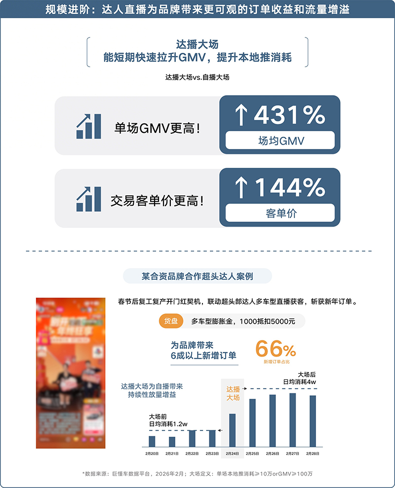 某品牌新车上市为这一策略提供了完整范本:以平台级IP为阵地,通过开屏曝光、脱口秀创意视频造势、定制搜索热词等组合动作,打通“看-搜-购”种收一体链路,最终实现支付GMV超4300万,登上全国团购榜TOP1。