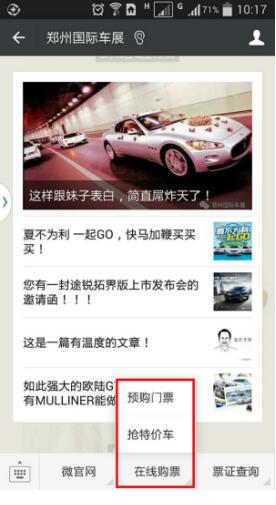 1、关注“郑州国际车展”微信公众号,选择“预购门票”,支付成功获得“抢特价车”资格;