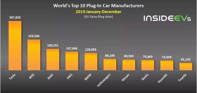 (根据EV Sales 2019年全球电动汽车销量的数据,现代汽车以7.2959万辆排名第9,起亚汽车以5.3477万辆排名第11。现代和起亚汽车销量之和为12.6436万辆,力压大众排名第6。)